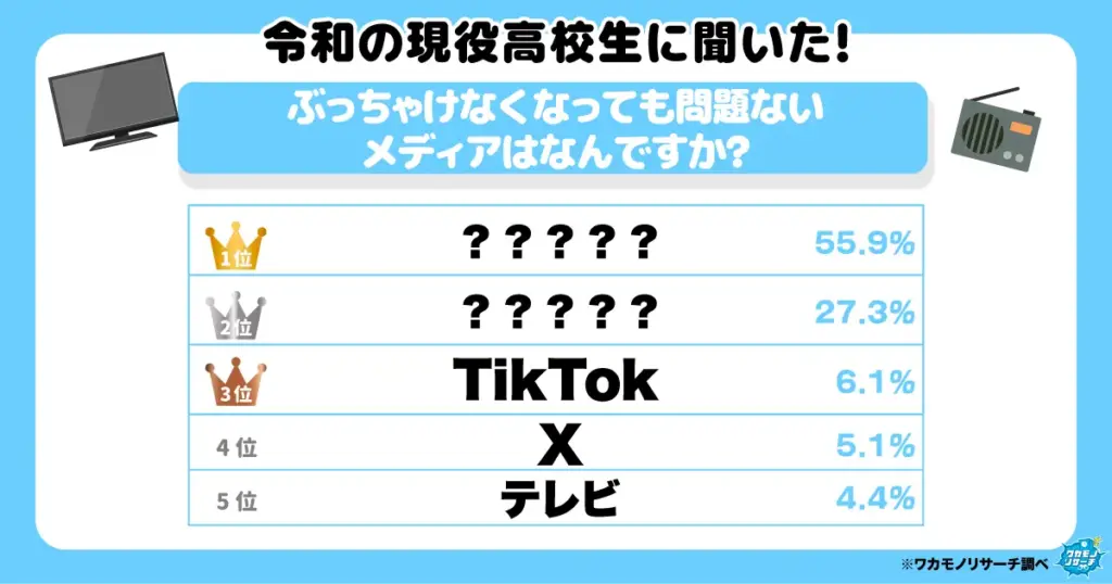 令和の現役高校生が思う“なくなってよいと思うメディア” 1位はFacebook 3位にTikTokがランクインする結果に